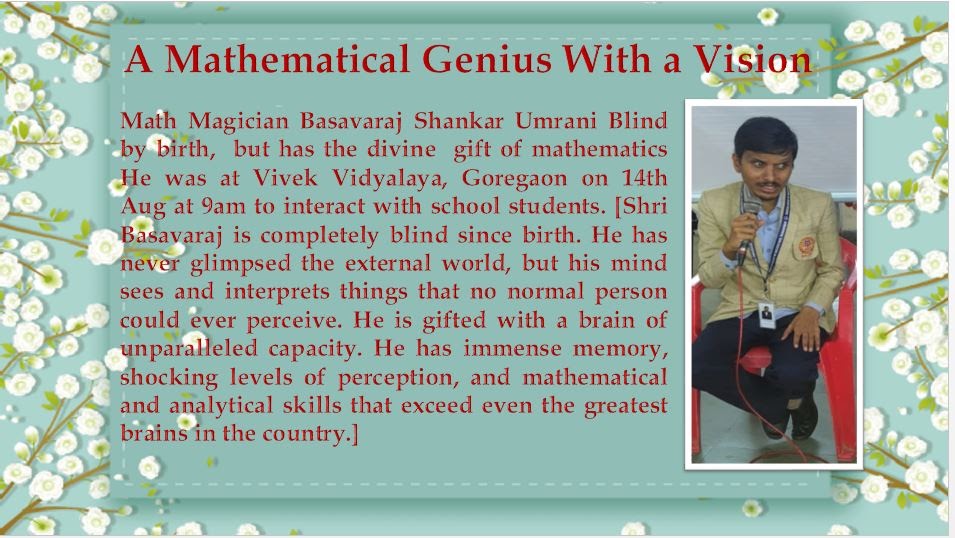 We thank Madhura Gosavi ,Jenslin Nadar, Reshma Dravid, Alka Kulkarni, and all the teachers for their valuable support and guidance in making this event a success.